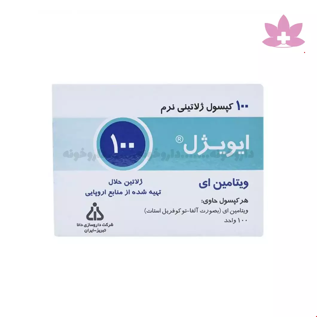 سافت ژل ایویژل ۱۰۰ دانا حاوی 100 واحد ویتامین ای بوده که جهت بازسازی سلول ها و افزایش شادابی و جوانی پوست، حفظ عملکرد نرمال سیستم قلبی – عروقی و کمک در درمان ریزش مو مورد مصرف قرار می گیرد.