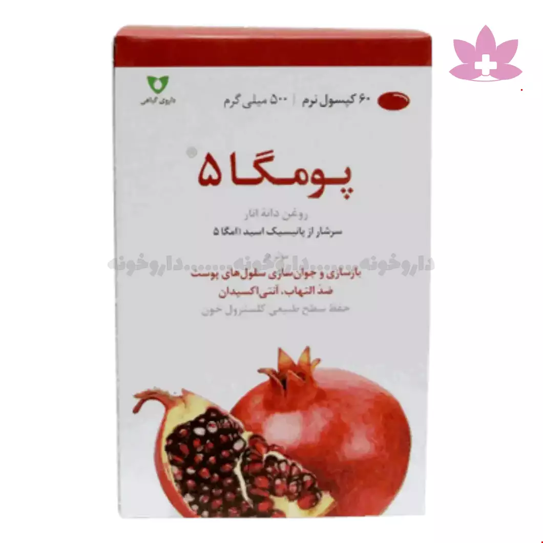کپسول نرم پومگا 5 وشا دارو فرآورده ای ارگانیک و متشکل از روغن دانه انار بوده که به دلیل خاصیت ضد التهابی و آنتی اکسیدانی قوی موجب پیشگیری از بروز پیری زودرس ، بازسازی و جوانسازی پوست می گردد. این مکمل همچنین به کنترل سطح کلسترول خون نیز کمک شایانی می نماید.