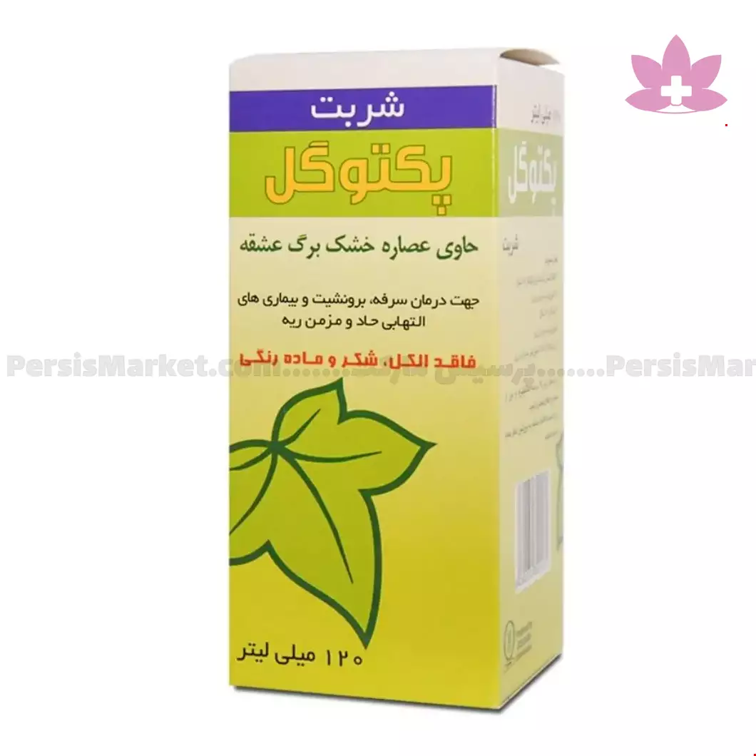 شربت پکتوگل فرآورده ای طبیعی است که حاوی عصاره برگ گیاه عشقه می باشد . این شربت جهت بهبود علائم برونشیت حاد و مزمن ، درمان سرفه و خروج اخلاط تنفسی مورد مصرف قرار می گیرد