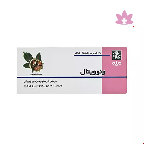 قرص ونوویتال دینه فرآورده ای طبیعی است که حاوی عصـاره دانـه شـاه بلـوط هنـدی می باشد. قرص ونوویتال دینه جهت بهبود نارسایی مزمن شبکه سیاهرگی و رفع عـوارض ناشی از آن همچون اِدم، خارش، درد و احساس سنگینی در پاها، گرفتگی عضله ساق پا بسیار موثر بوده و به پیشگیری و بهبود علائم بیماری های واریس و هموروئید کمک بسزایی می نماید.