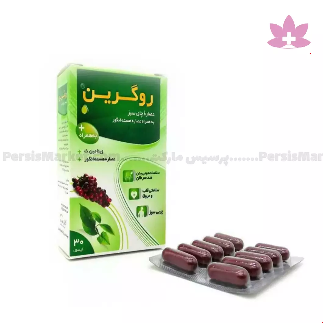 کپسول روگرین قائم دارو فراورده ای کاملا طبیعی است که حاوی عصاره چای سبز، عصاره هسته انگور و ویتامین ث می باشد. وجود ترکیبات آنتی اکسیدان قوی در فرمولاسیون کپسول روگرین قائم دارو موجب حفظ سلامت عمومی بدن، پیشگیری از سرطان و کمک به درمان بیماری های قلبی عروقی می گردد.کپسول روگرین قائم دارو همچنین با تحریک متابولیسم و سوخت و ساز چربی موجب چربی سوزی و کاهش وزن نیز می گردد.