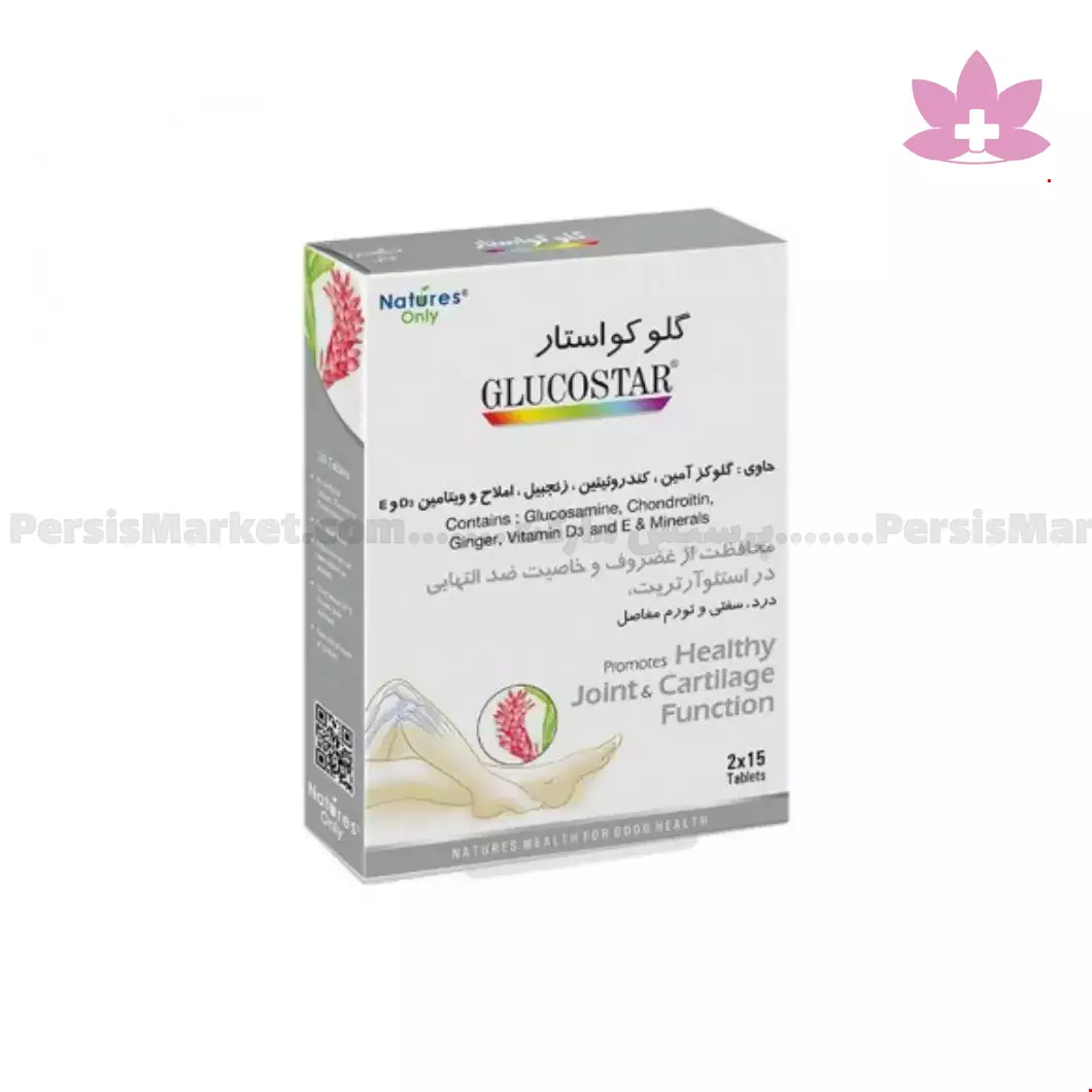 قرص گلوکو استار نیچرز اونلی حاوی عناصر طبیعی و گیاهی، مولتی ویتامین و مینرال و آنتی اکسیدان میباشد. قرص گلوکو استار نیچرز اونلی موجب حفاظت از ساختار غضروف و مفاصل، تقویت سیستم ایمنی و کاهس حساسیت مفاصل نسبت به سرما میشود.