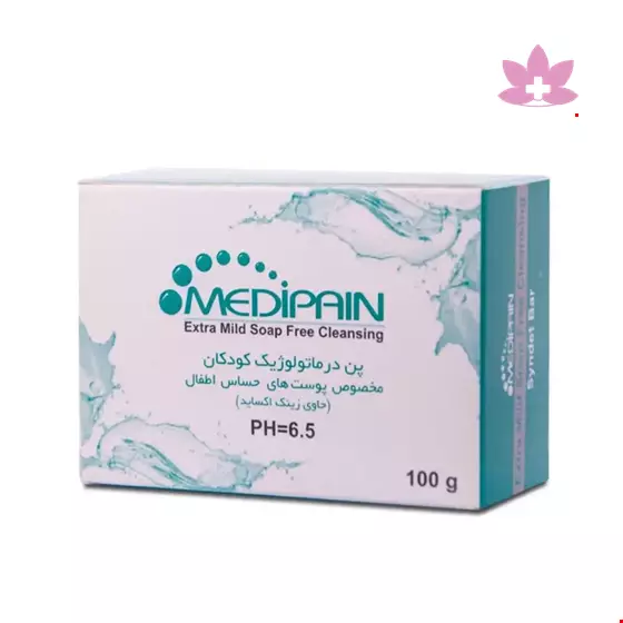پن درماتولوژیک کودکان مدیپن شوینده ای ملایم حاوی روغن طبیعی کرچک، نارگیل، برنج و ویتامین ای بوده و موجب آبرسانی و حفظ نرمی و لطافت پوست کودک می گردد. وجود زینک اکساید در فرمولاسیون پن درماتولوژیک کودکان مدیپن به پیشگیری و رفع ادرار سوختگی در کودکان کمک بسزایی می نماید.
