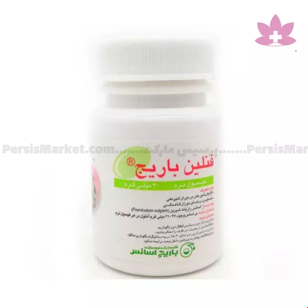 سافت ژل فنلین باریج حاوی اسانس رازیانه بوده و موجب کاهش دردهای دوران قاعدگی و همچنین افزایش شیر در مادران شیرده می شود