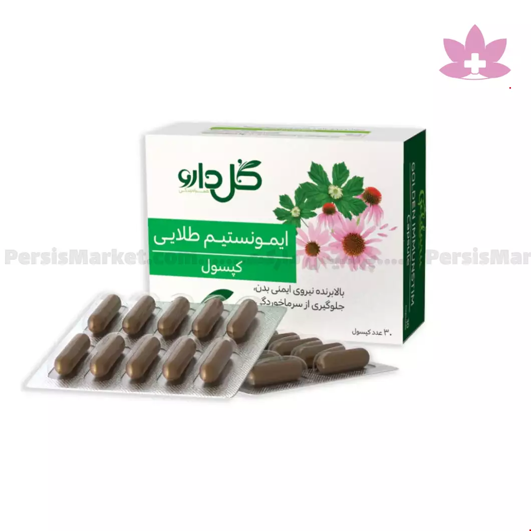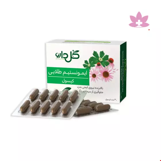 کپسول ایمونستیم طلایی فرآورده ای طبیعی است که حاوی پودر ریشه طلائی می باشد . مصرف این دارو به طور موثری موجب تقویت سیستم ایمنی ، پیشگیری و بهبود علائم ناشی از سرماخوردگی و آنفلوانزا می گردد
