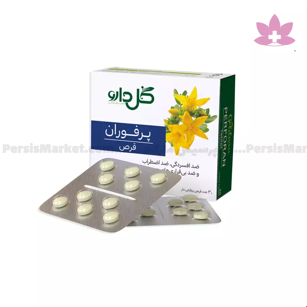 قرص پرفوران گل دارو فرآورده ای طبیعی است که حاوی عصاره خشک گیاه علف چای می باشد . ان مکمل جهت کنترل اضطراب و استرس و بهبود علائم افسردگی همچون اختلالات خواب ، کاهش سطح انرژی و اختلالات خلق و خو بسیار موثر می باشد
