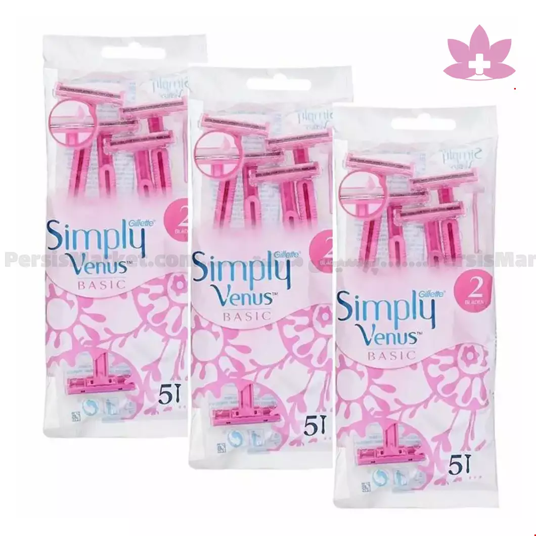 تیغ اصلاح دو لبه ونوس صورتی مخصوص بانوان ژیلت 5 عددی
